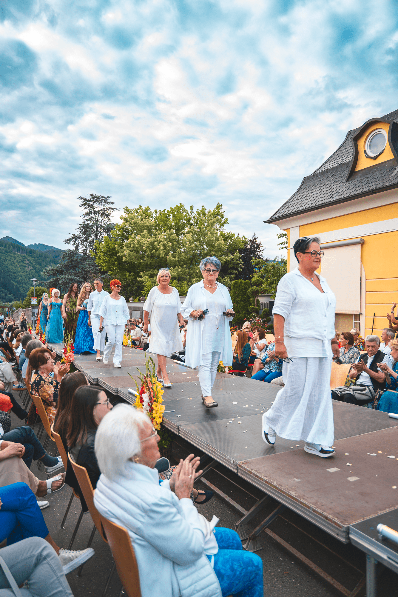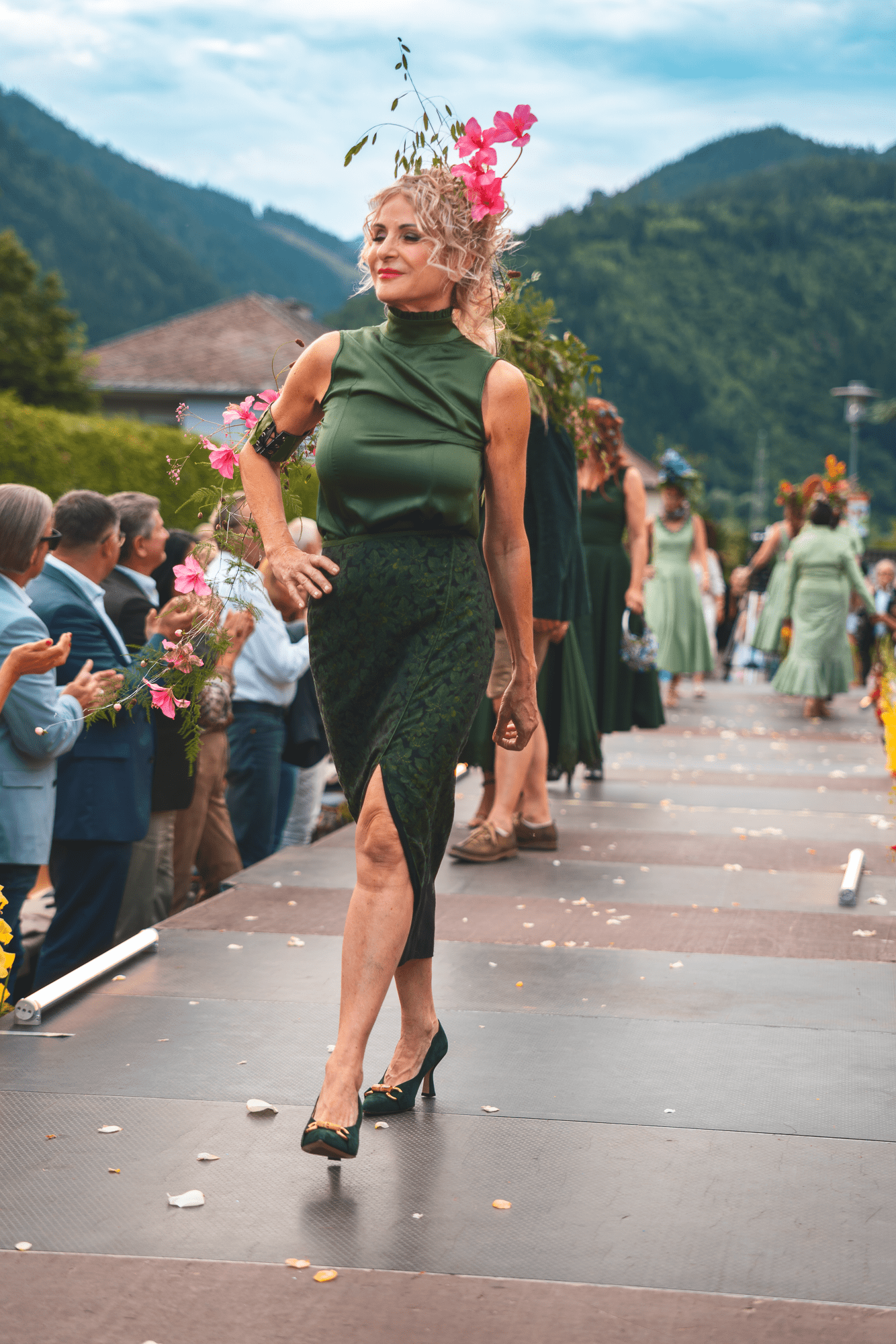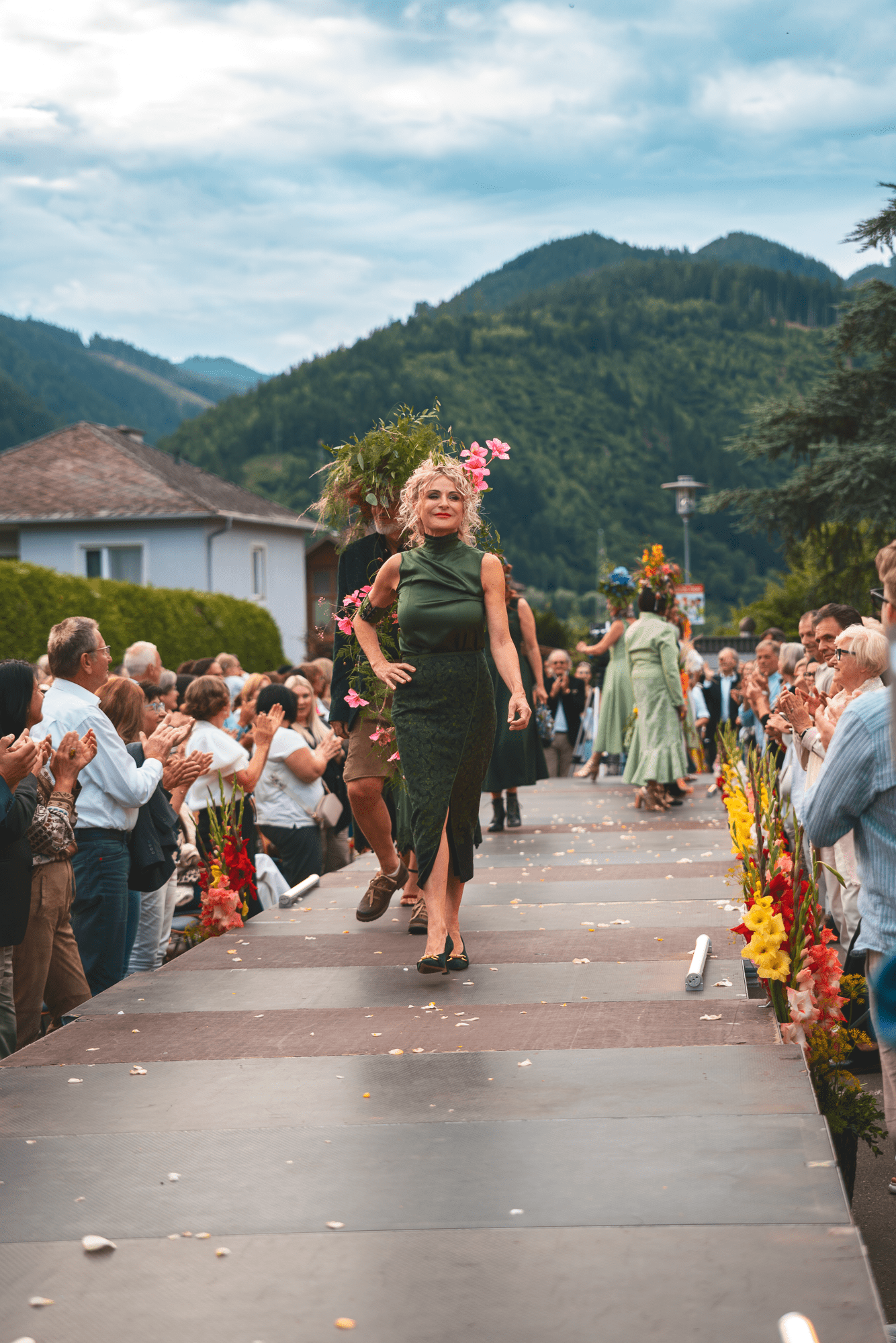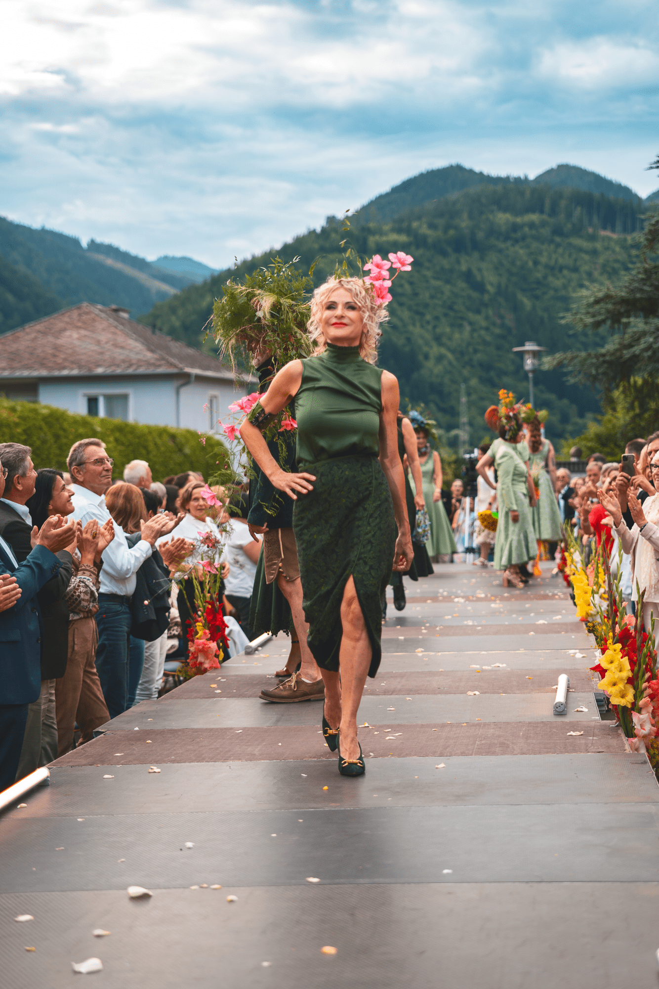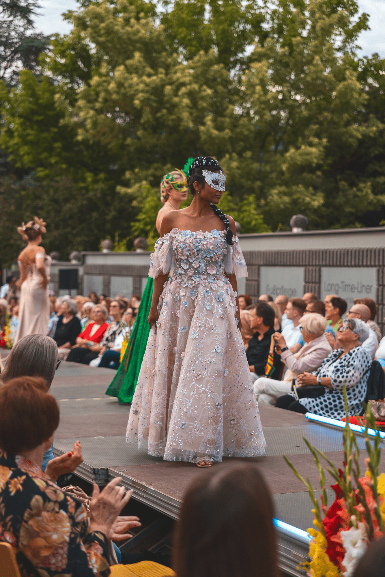 Mit floralen Bildern, natürlichen Tönen und bewegten Silhouetten wurde aus der Show Schritt für Schritt wieder etwas Helles, Offenes und Verbundenes.